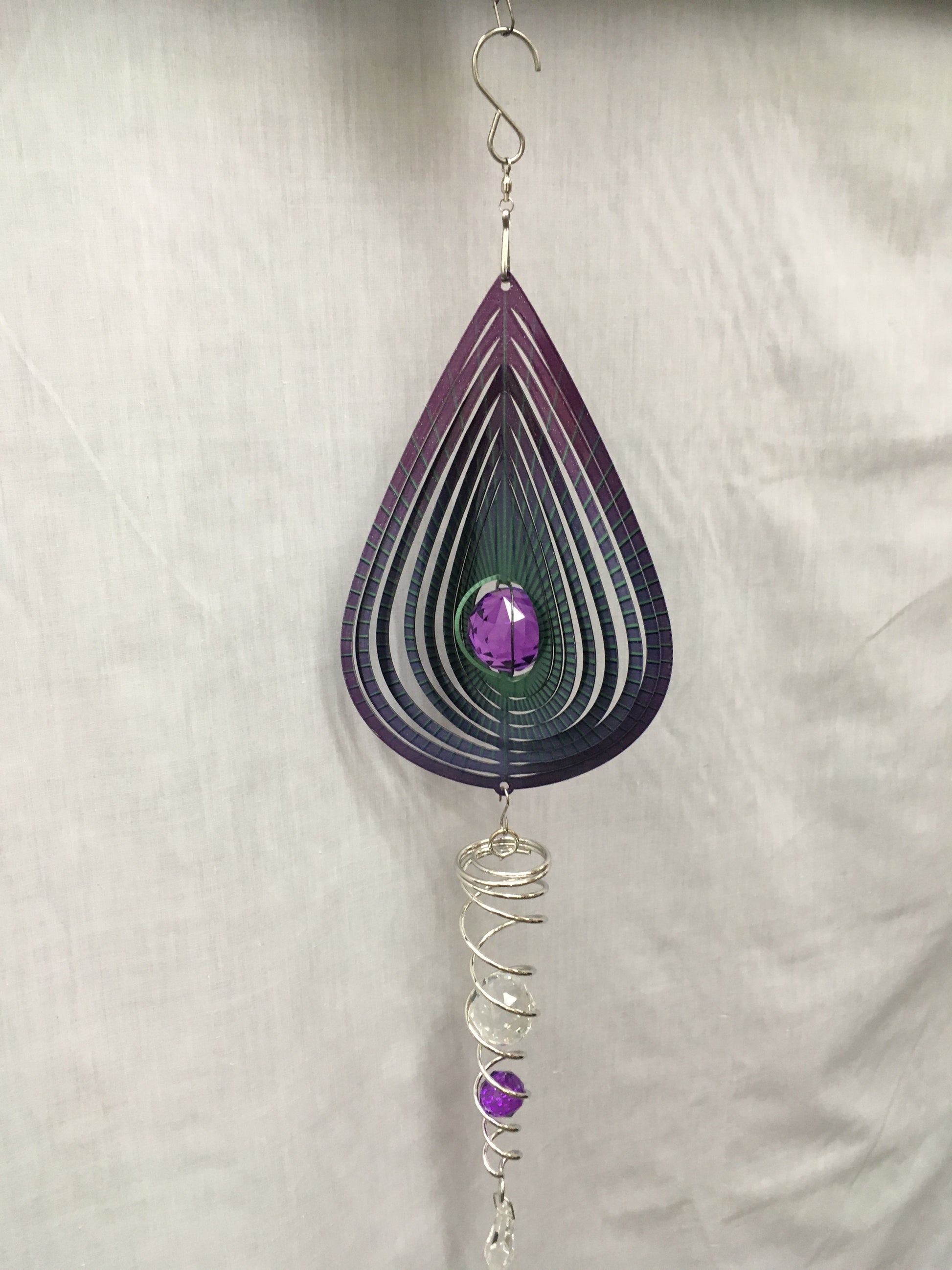 Spinner Set - Purple Teardrop Small Wind Spinner with Twister Spiral Tail double crystal Tail