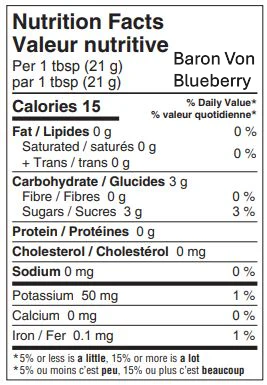 Baron Von Blueberry - 41ml Ingredients: Blueberries, Organic cane sugar, Pure lemon juice, Pectin, Cinnamon, Nutmeg, Allspice, Citric acid