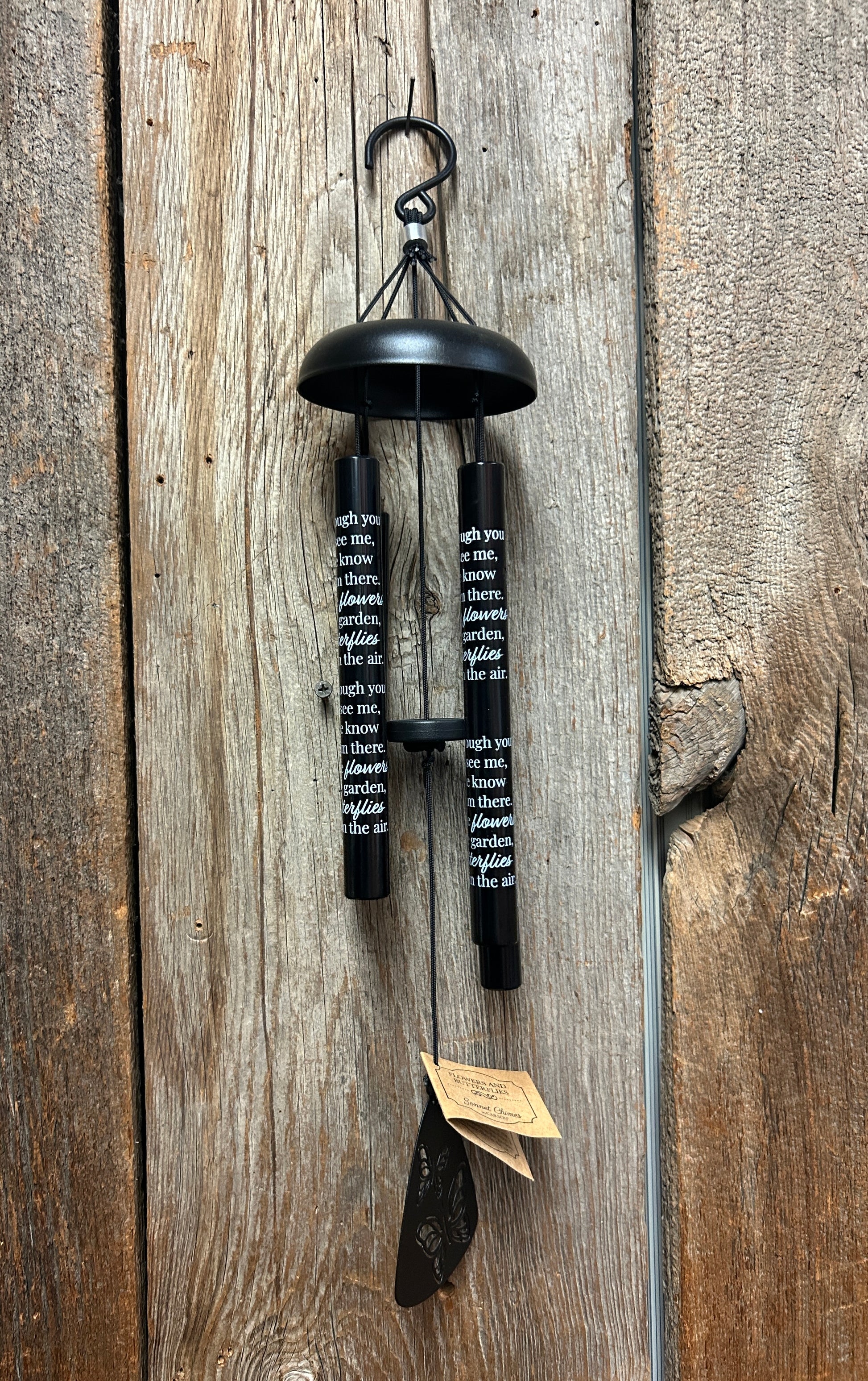 Wind Chime - 21" - Flowers Butterflies - Although You Can Not See Me Please Know that I am There... - Black Tubes - 2 Butterflies on Sail