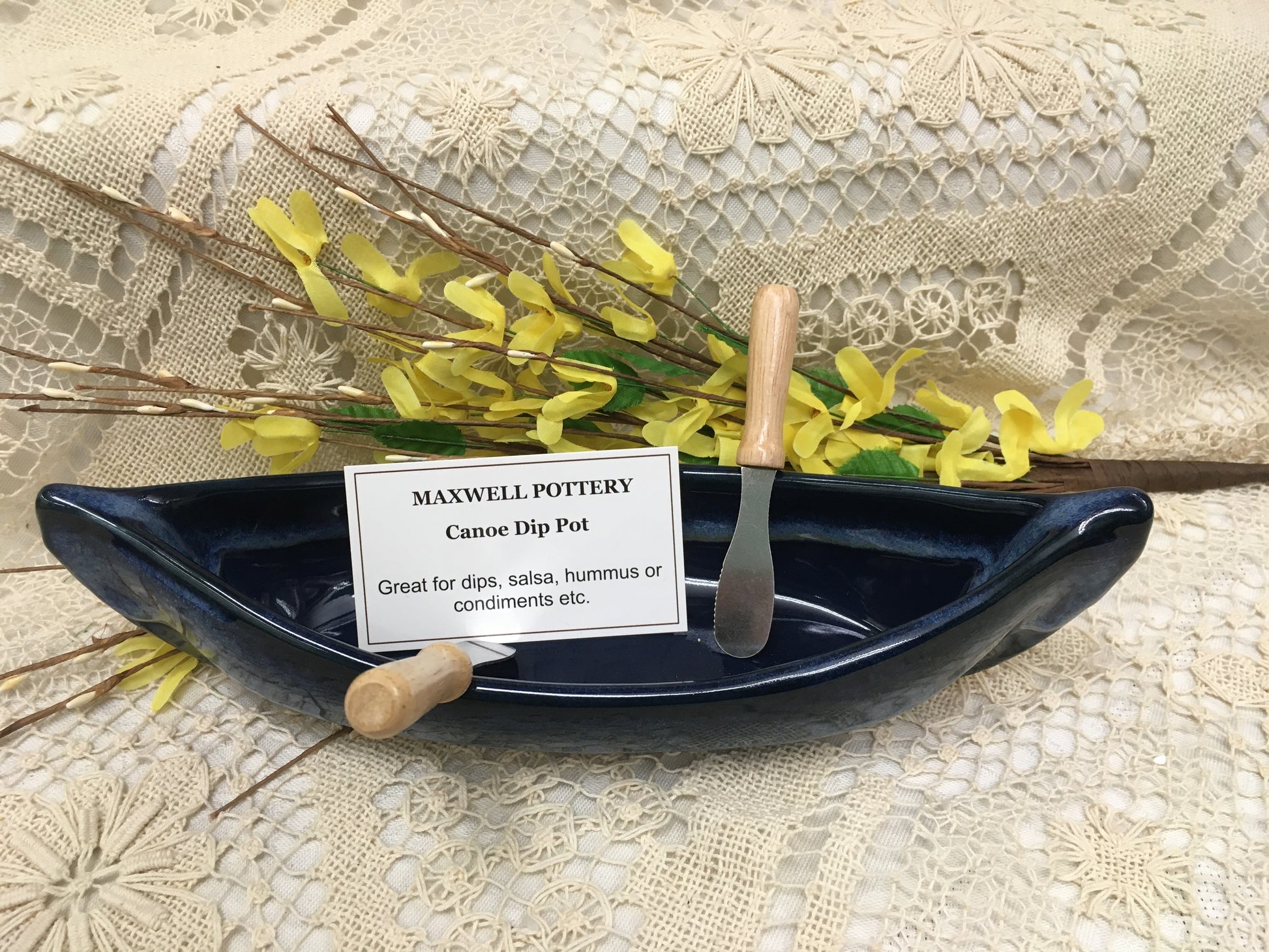 Canoe Dip Pot - Northern Lights Blue - Maxwell Pottery - Canadian Handmade