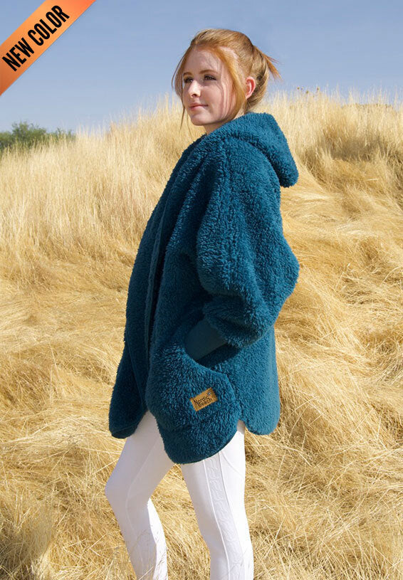 Stay warm in style with this Sapphire Sea, Teal coloured Nordic Beach Body Wrap. It is incredibly warm and comfortable with sleeves, a hood and pockets. It feels like being wrapped in the comfort of a blanket. All Nordic Beach Body Wraps come in a zippered carry bag. One size fits all.