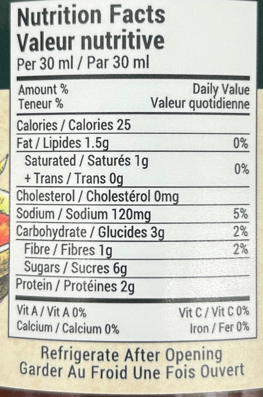 Ingredients: red peppers, onions, tomato sauce, pure cane sugar, green peppers, cider vinegar, black & green olives, celery, pickled peppers, tomato paste, chipotle peppers, garlic, pectin, spices, salt