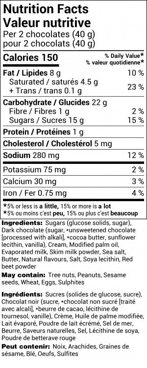 This 12 piece box of delicious chocolate has a checkerboard of pink and white sea salt caramels. It has the perfect balance of sweet and salty.