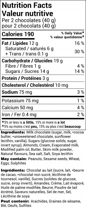 Sea Salt Empress Squares - Milk Chocolate - 4 squares - sleeve pkg - Rogers Chocolates