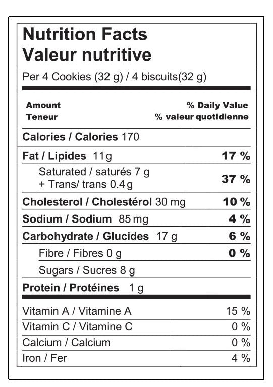 Ingredients: unbleached wheat flour, butter, sugar, rice flour, pure pumpkin, pumpkin spice, pure vanilla extract, cinnamon, sea salt
